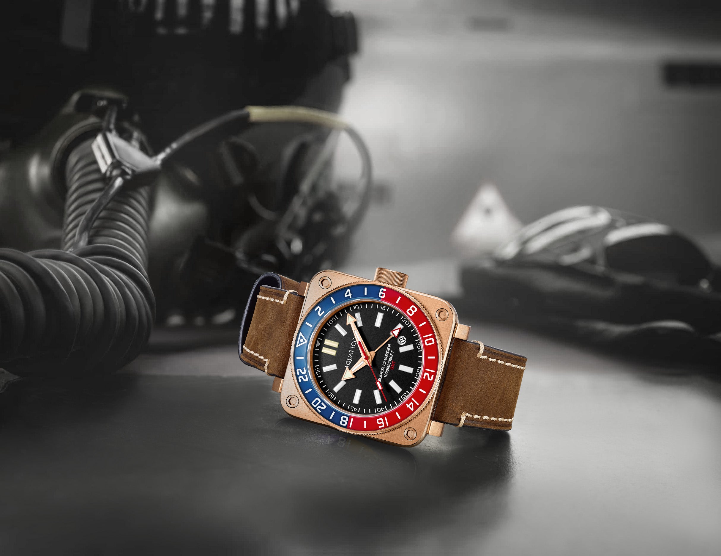 The distinctive square sandwich design of the Bronze CuSn8 case not only lends a striking aesthetic but also reinforces its structural integrity, ensuring longevity and resilience for the modern adventurer.
