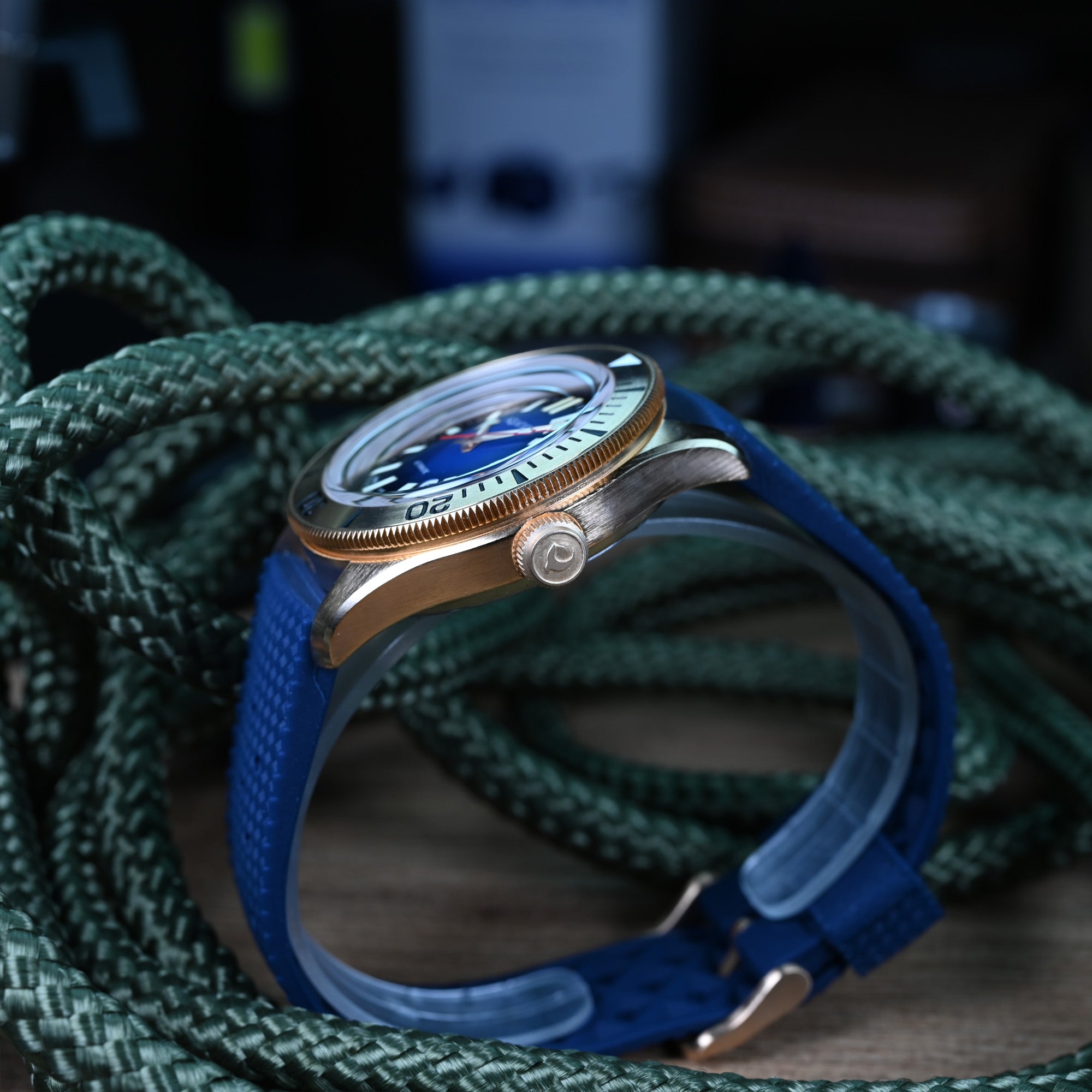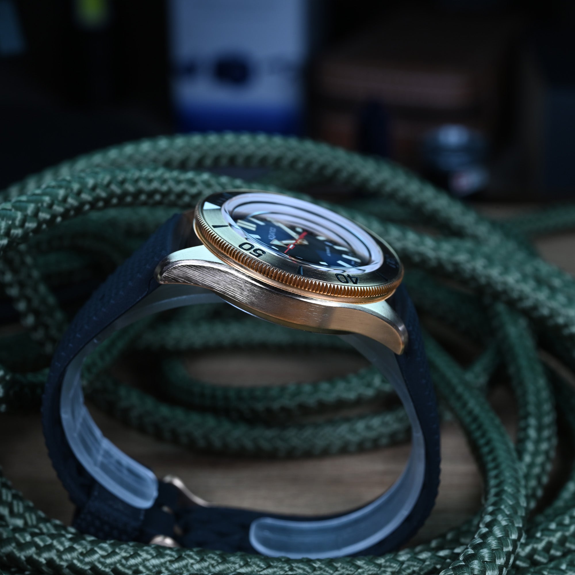 Over time, the solid bronze case develops a natural, evolving patina, giving each piece a unique character that reflects your journey. Strong, distinctive, and full of personality, it’s a material that not only performs in harsh conditions but also grows more beautiful with age.