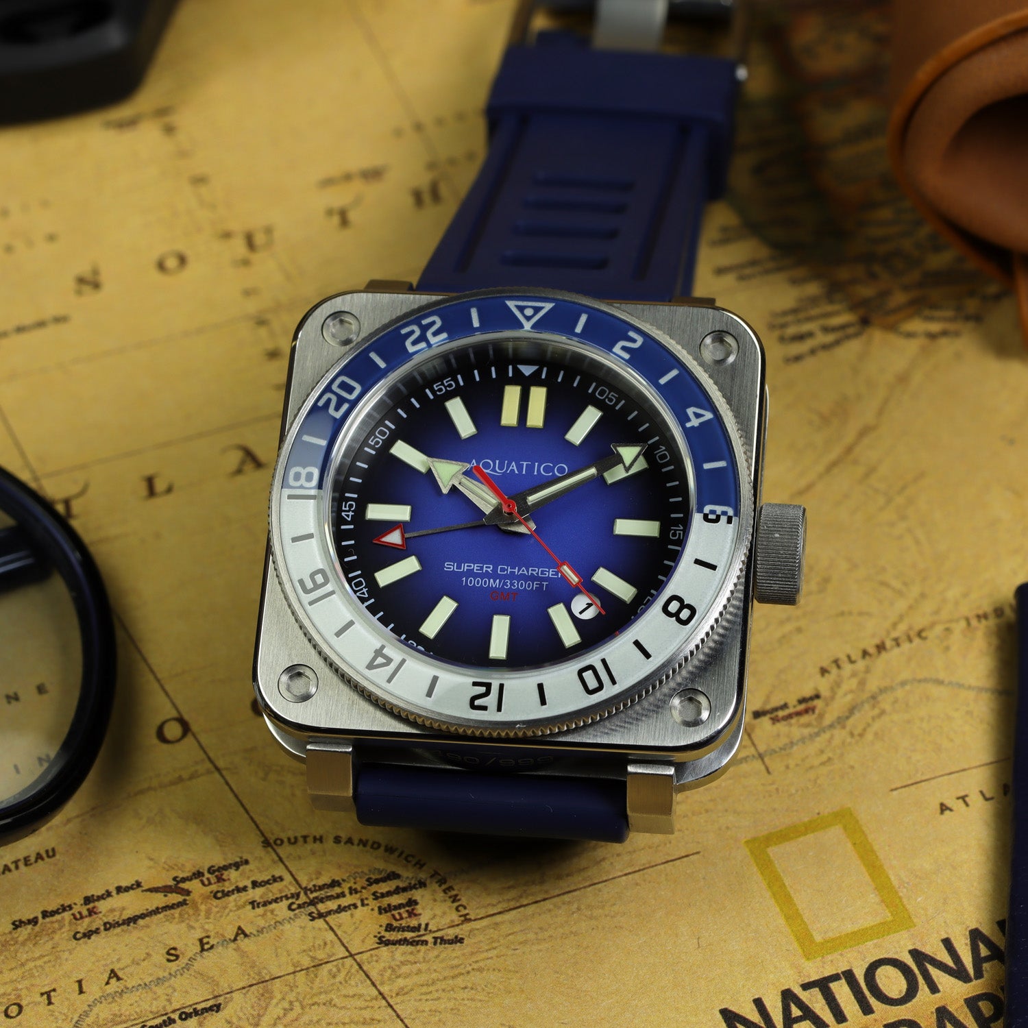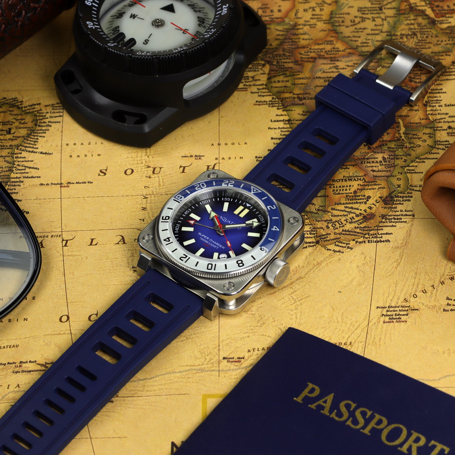 Aquatico Steel Man GMT Watch (Blue Dial Blue/White Bezel)
