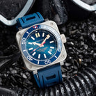 It merges robust functionality with sleek aesthetics, embodying the spirit of underwater exploration and modern design. Its prominent square case and bold lines exude strength and durability, while the black dial with luminous markers ensures readability even in the darkest depths. The ceramic bezel offers scratch resistance and a luxurious touch, while the red accents add a striking contrast to the monochrome palette. Designed for professional divers and watch enthusiasts alike, this timepiece combines practical features such as a 1000m water resistance and automatic movement with a contemporary style, making it a versatile accessory for both underwater adventures and everyday wear.