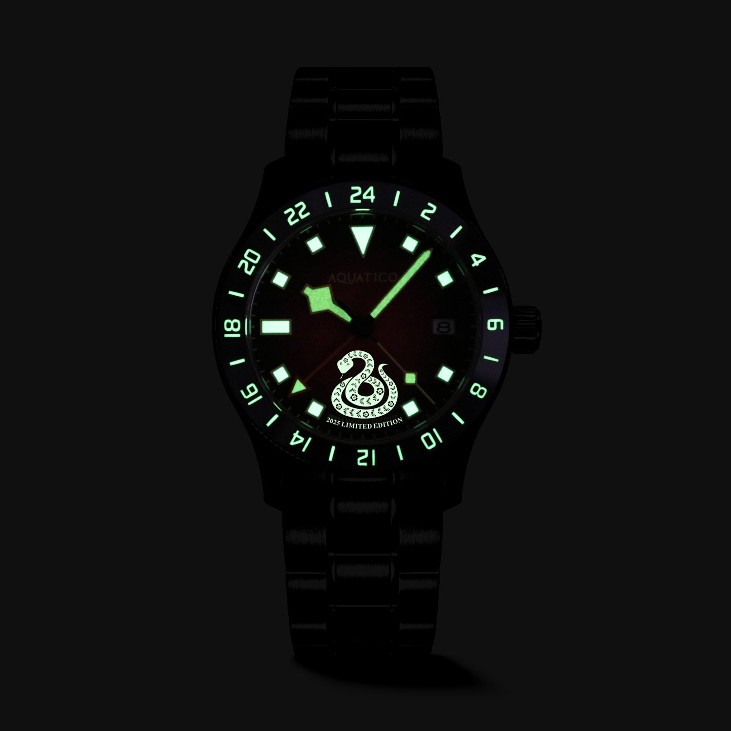 the Aquatico Snake Year Limited Edition GMT — a tribute to strength, transformation, and timeless style.