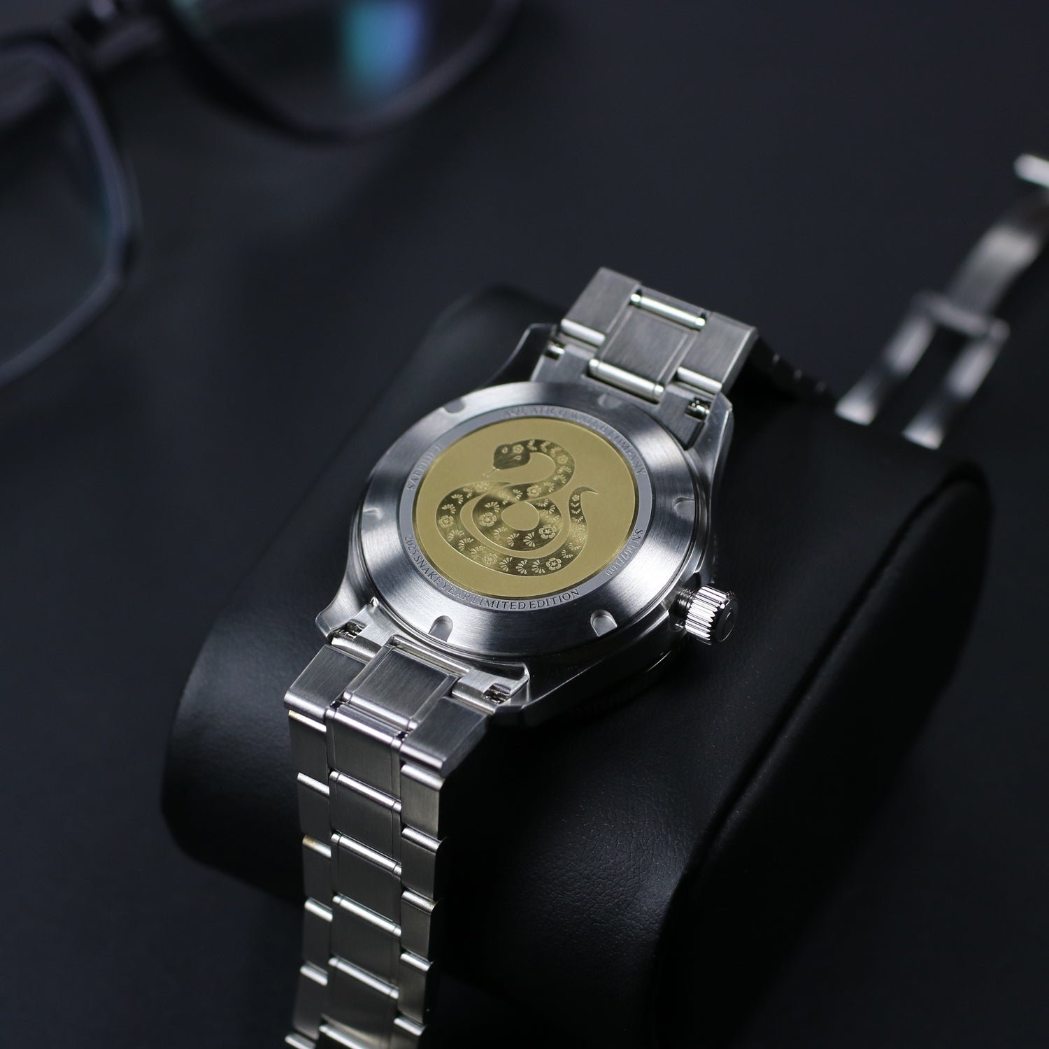 Every detail, from the polished case to the precise movement, reflects Aquatico's commitment to quality and excellence. The design pays homage to the Year of the Snake with subtle yet striking elements that evoke sophistication and power.