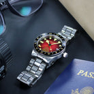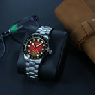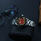 • Gradient Red Dial: The vibrant gradient red dial adds a dynamic and captivating visual element, further enhanced by the application of Old Radium Super-LumiNova for exceptional legibility in any lighting conditions.