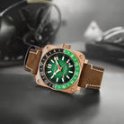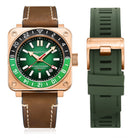 The distinctive square sandwich design of the Bronze CuSn8 case not only lends a striking aesthetic but also reinforces its structural integrity, ensuring longevity and resilience for the modern adventurer.