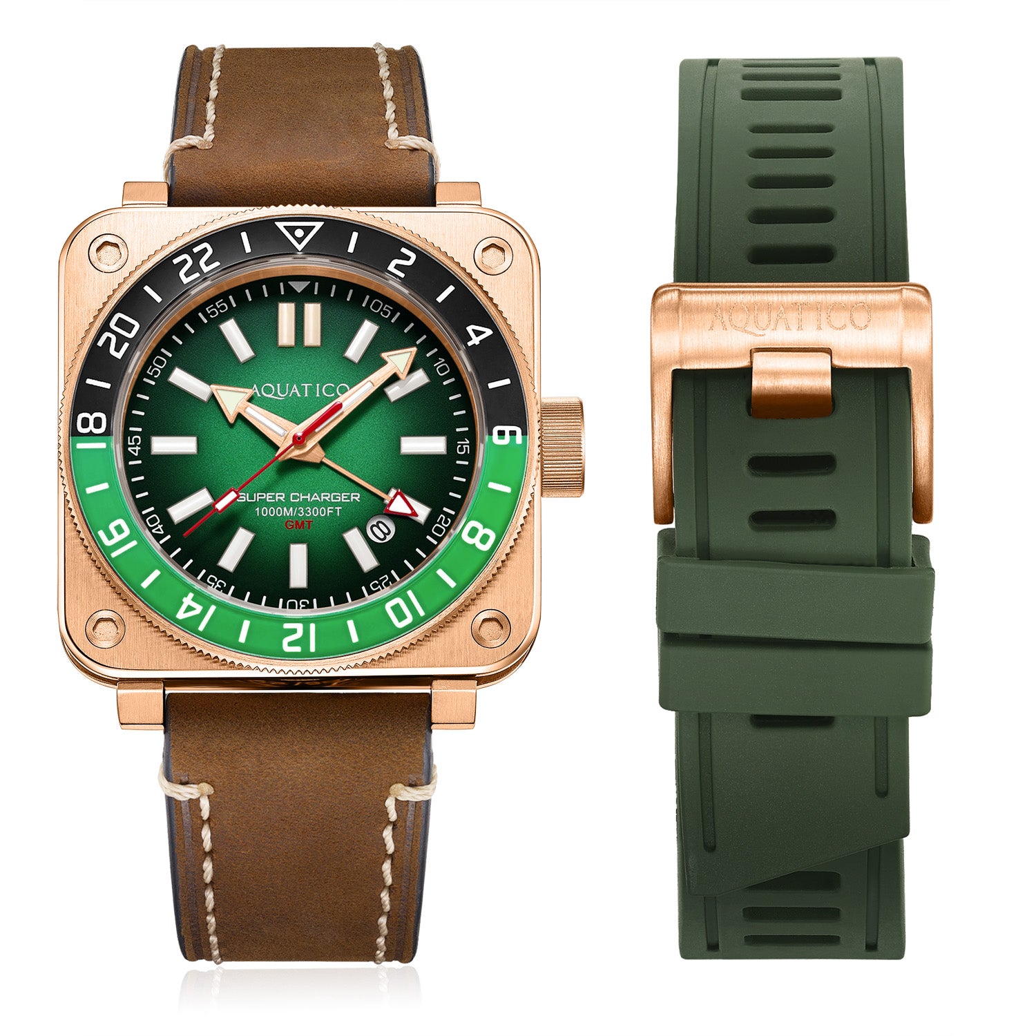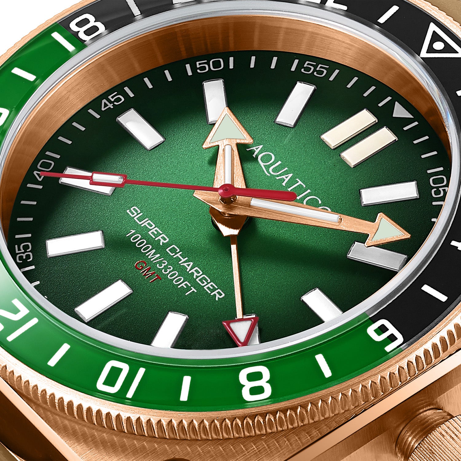 Aquatico Super Charger GMT Watch (Green Dial Green and Black Bezel)
