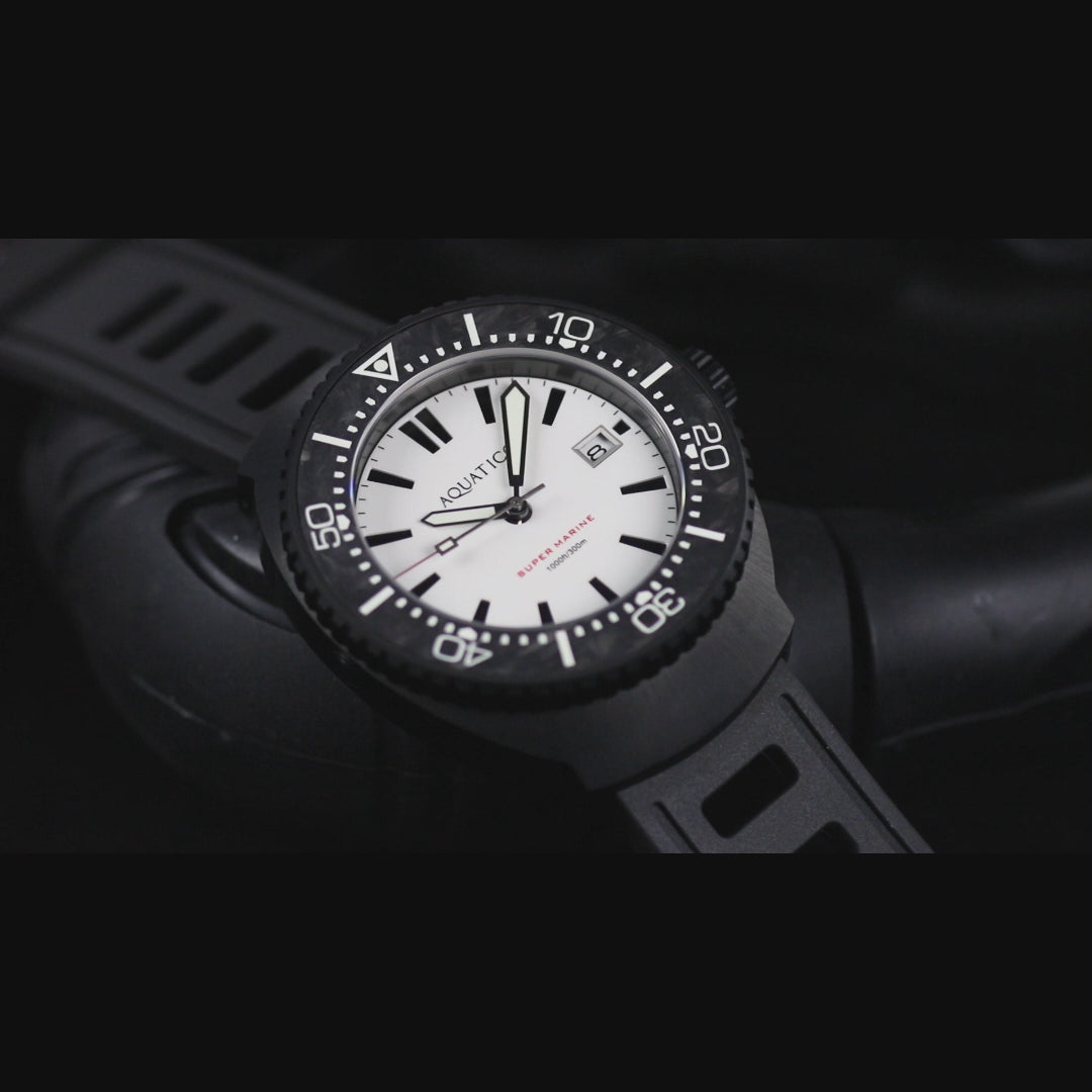 Super Marine Titanium Full Lume White Dial Forged Carbon Inlay Watch
