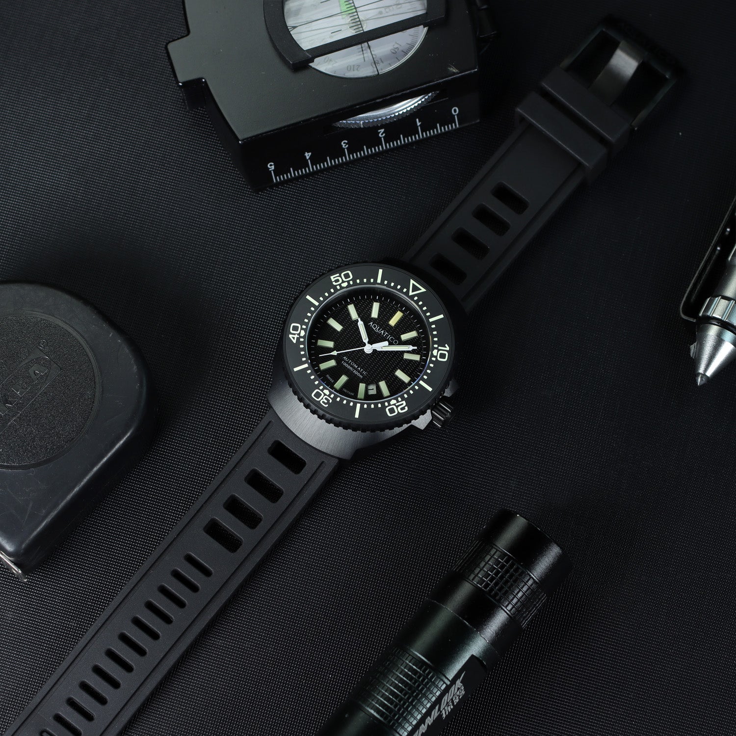 Tritium watches are designed to be highly durable, but it's important to protect the watch from extreme temperatures and chemical exposure. High temperatures or contact with strong chemicals can affect the tritium's luminescence and overall functionality. Additionally, ensure that the watch's case and crown are securely sealed before exposing it to water, especially if it's a dive watch.