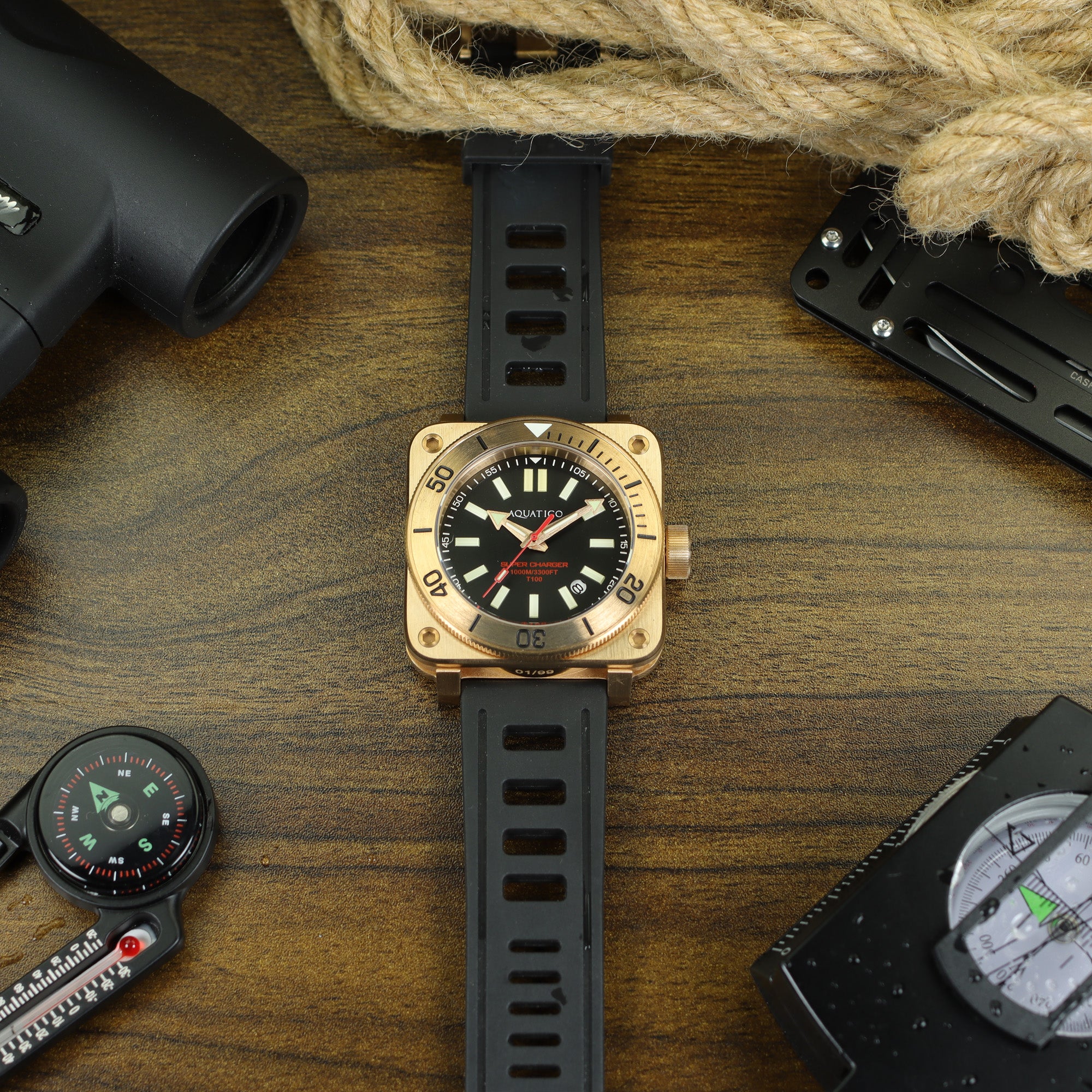 Over time, the solid bronze case develops a natural, evolving patina, giving each piece a unique character that reflects your journey. Strong, distinctive, and full of personality, it’s a material that not only performs in harsh conditions but also grows more beautiful with age.