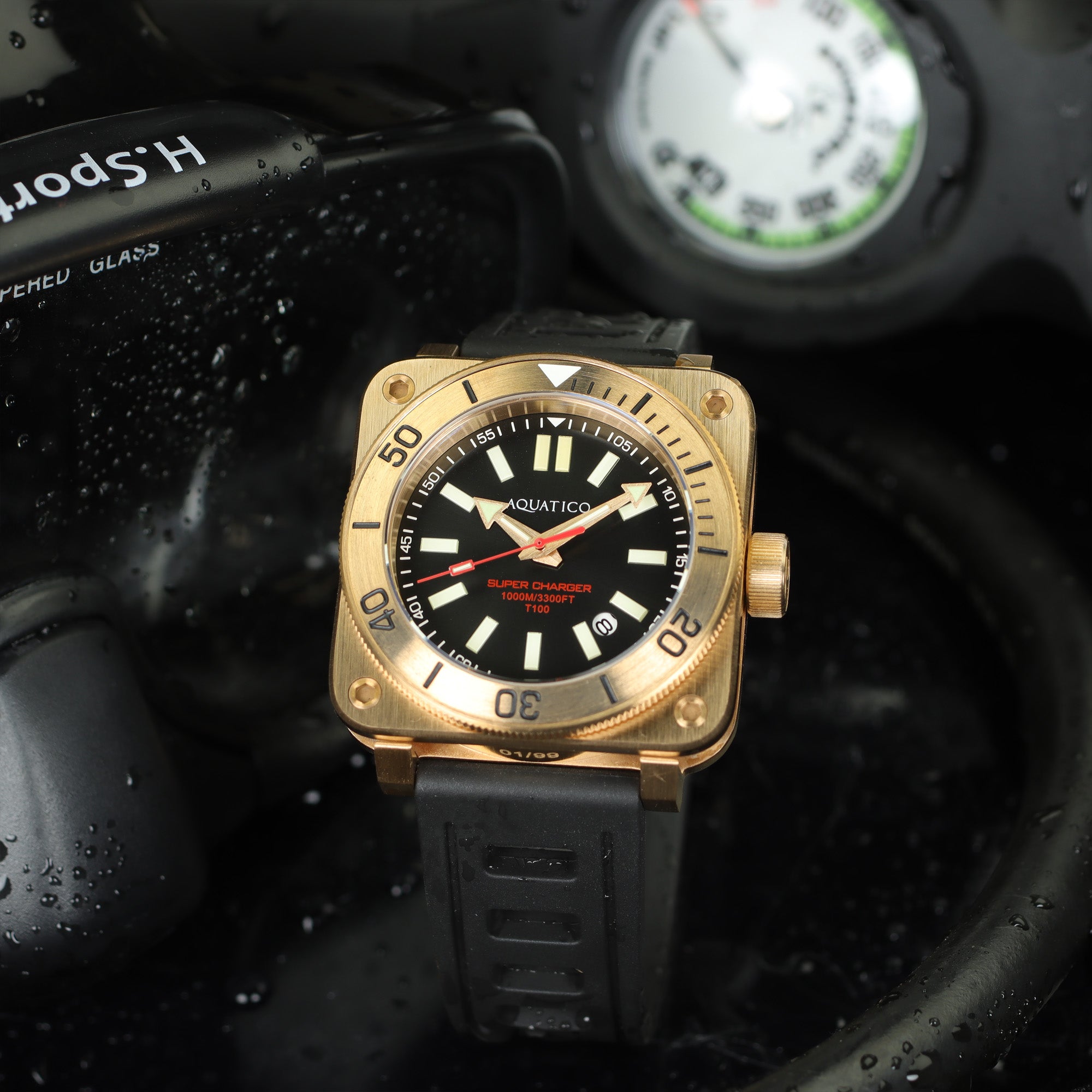Crafted from marine-grade solid CuSn8 bronze, the Super Bronze Tritium is a dive watch that evolves with you. The bronze case develops a rich, natural patina over time—giving every piece its own unique character while offering excellent corrosion resistance for real marine use.