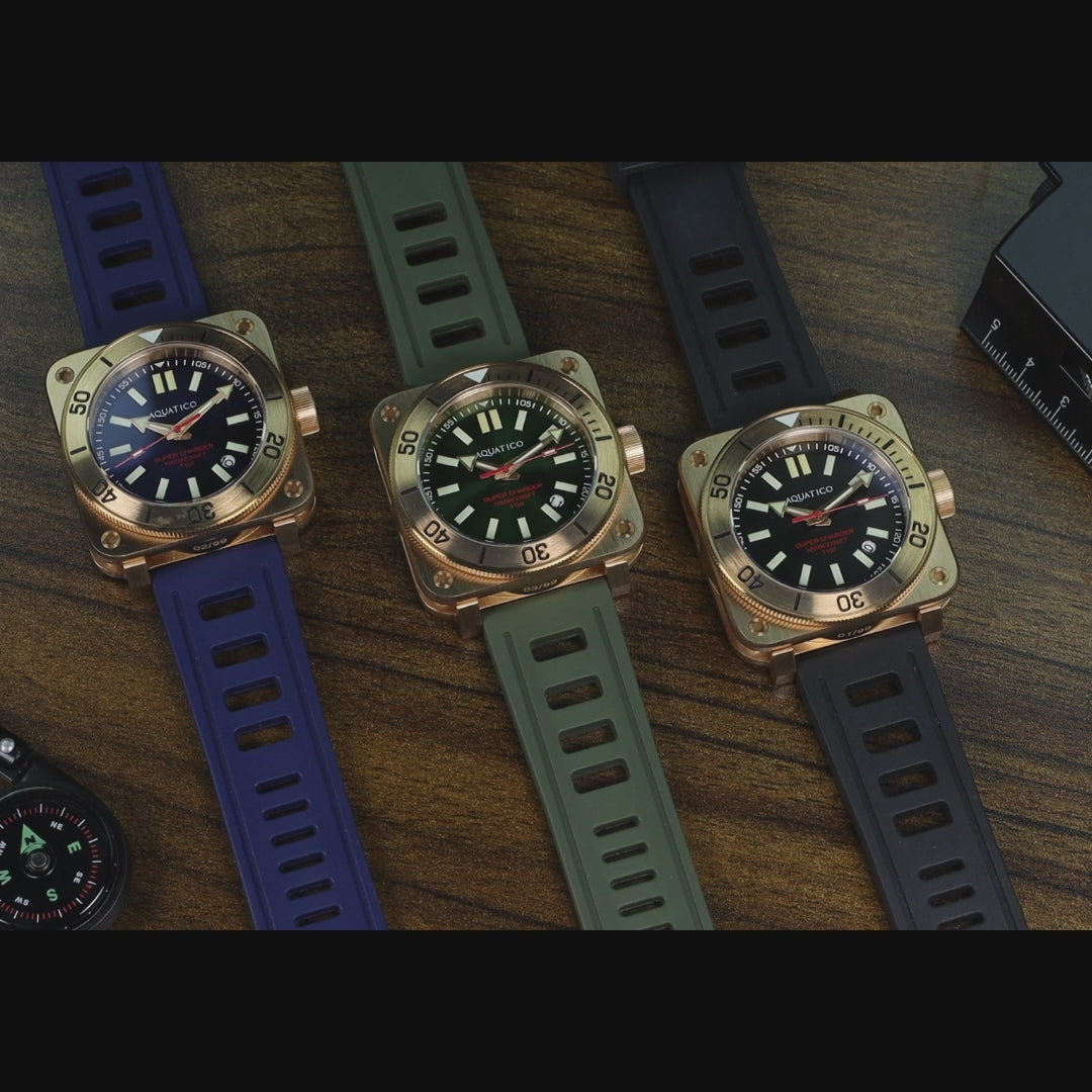 Crafted from marine-grade solid CuSn8 bronze, the Super Bronze Tritium is a dive watch that evolves with you. The bronze case develops a rich, natural patina over time—giving every piece its own unique character while offering excellent corrosion resistance for real marine use.