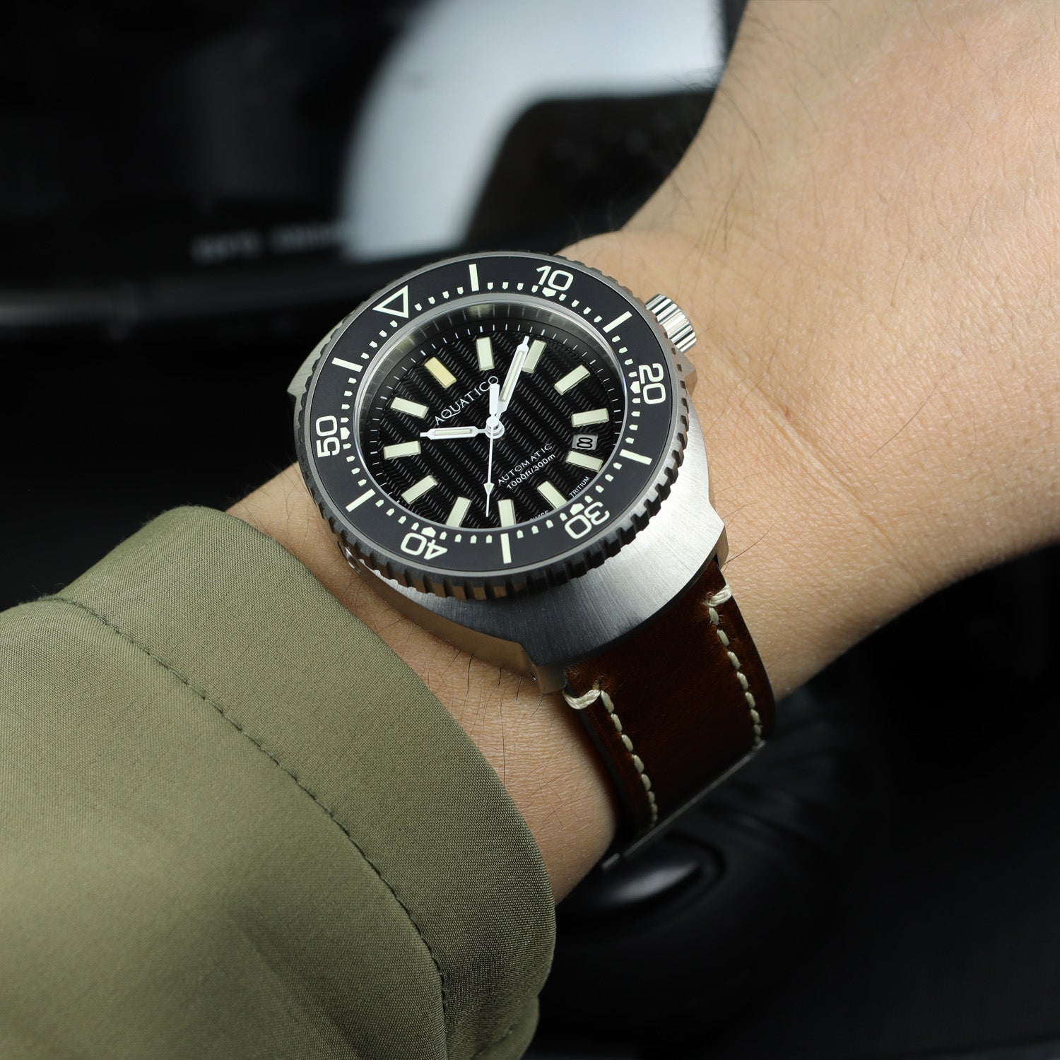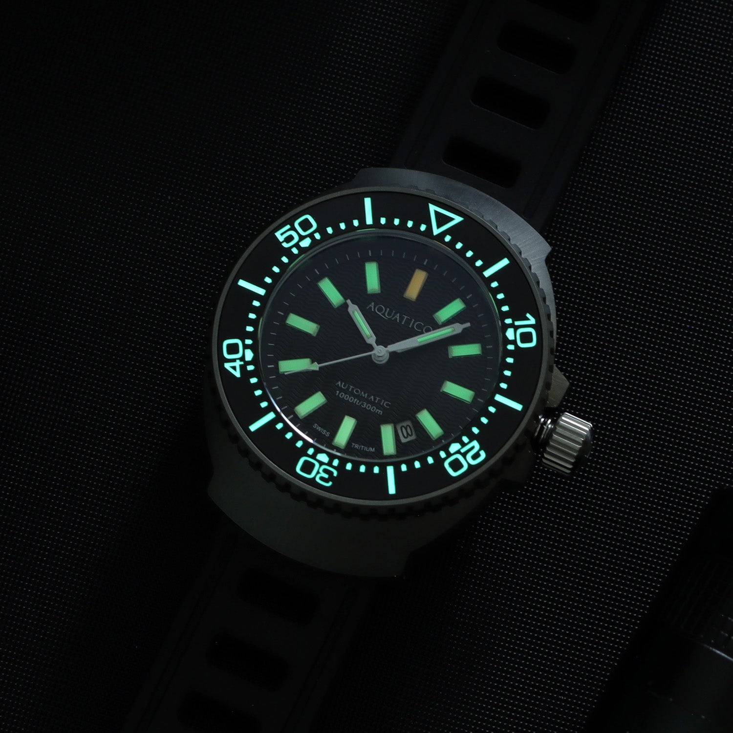 Tritium watches are designed to be highly durable, but it's important to protect the watch from extreme temperatures and chemical exposure. High temperatures or contact with strong chemicals can affect the tritium's luminescence and overall functionality. Additionally, ensure that the watch's case and crown are securely sealed before exposing it to water, especially if it's a dive watch.