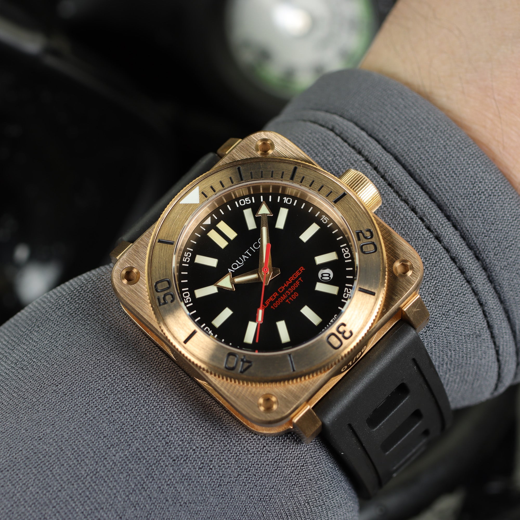 Crafted from marine-grade solid CuSn8 bronze, the Super Bronze Tritium is a dive watch that evolves with you. The bronze case develops a rich, natural patina over time—giving every piece its own unique character while offering excellent corrosion resistance for real marine use.